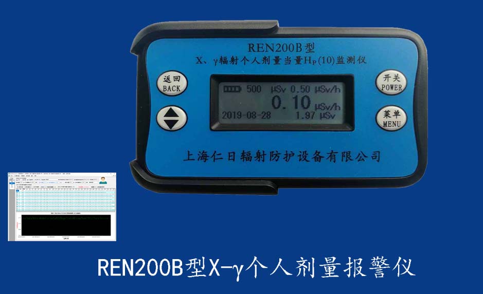 REN210型X、γ、中子個人輻射報警儀內置SiPM和鋰玻璃晶體組成中子探測器儀器,采用反照率方式探測中子射線,同時也能探測X、γ射線。因此它可同事監檢測X、γ、中子三種射線。能顯示工作場所的劑量當量率和累積劑量,更換電池時,日期及累積數據能永久保存。可選配RenRiPersonal個人劑量管理軟件,該軟件可存儲多個人的歷史數據,能記錄日累積、月累積、年累積、輻照時長、計算平均劑量率、扣除或不扣除本底輻射,且以文字和圖譜的方式展現數據。廣泛應用于環保、化工、水泥、煤礦、土木工程、石油、醫院、疾控、進出口商檢、核電、加速器、機場、中子源庫和其他安檢、邊境控制海關檢測等領域中的工作人員進行個人安全防護